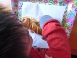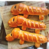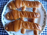 | いぬのドッグロール(3本)かわいいかたちをしていますが味は本格!犬のかたちをしたかわいいドッグロールが3本入っています。お腹よりも背中にソーセージを挟んだほうが見た目がGOODですよ。 | |