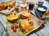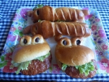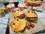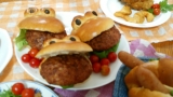 | かえるのバーガーバンズ(3個)ハンバーグをはさむと、かえるがくわえたように見える、かわいいハンバーガーバンズです。行楽のシーズン、お子さまと一緒にハンバーガーづくりはいかがでしょうか? | |