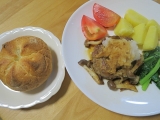 | >>石窯イタリアンロール(2)セモリナ粉を使用した生地に、オリーブ・ハーブを混ぜ込み、皮は香ばしく、中はしっとり・もっちりと石窯で焼き上げました。 | |