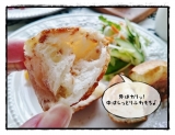 | >>石窯チーズ&ベーコンロール(2)ナチュラルチーズとベーコンを混ぜ込んだ生地を、皮は香ばしく、中はしっとり・もっちりと石窯で焼き上げました。 |