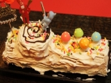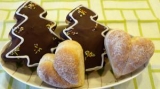 | ツリー 2個もみの木をあしらったウィーン風ブリオッシュ生地を焼き上げチョコレートでコーティング。生地の間には隠し味にカスタードを挟んでいます。カラーチョコレートをオーナメントに見立て、シュガーグラスで仕上げています。 | |