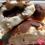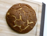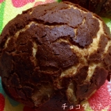 | シンプルな生地でとろーりとろけるチョコを包みましたチョコダッチシンプルなフランス生地で、バターを混ぜたミルクチョコレートフィリングを包み、ココア入りダッチトッピングをして焼き上げました。シンプルであっさりとした味わいの生地の中に、まろやかな甘さのチョコレートが好相性。上新粉を混ぜて(ヒビ割れた模様のように)焼き上げたダッチトッピングのパリパリっとした軽い食感も楽しいパンです。 |