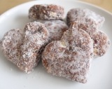 | ふわっと香る、チョコとバターの風味ショコラコンフェクションマジパンをたっぷり使ったしっとりした生地に、チョコチップ、ココアパウダー、オレンジスライス、クランベリーを混ぜ込んでいます。カリッと小さなハート型に焼き上げた後はバターにさっとつけて、グラニュー糖をまぶしています。 | |