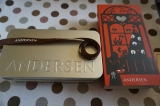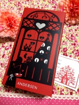 アンデルセン童話「マッチ売りの少女」のストーリーにちなんで、少女がマッチをするたびに見たごちそうやクリスマスなど、さまざまな光景を小さなクッキーであらわしています。マッチ売りの少女をイメージした赤を基調としたサックケースをご用意し、アンデルセンオリジナル缶でお届けします。冬の贈りものにいかがでしょうか。