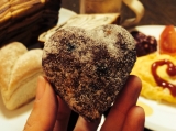 | チョコレートクーヘンショコラ風味のクーヘンです。外はサクッと中はしっとりした食感が楽しめます。VALRHONAスイートフェーブエキストラビターとマジパンで作ったチョコマジパンを生地に配合。外側には、パリッとチョコのコーティング。ティータイムにもおすすめの菓子パンです。 | |