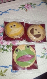 | 童話クッキー おやゆび姫のカエルプレーンな生地に、「おやゆび姫」に登場するカエルをデザインして焼き上げました。 | |