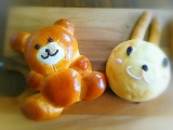 | クマさんのパン 1個こどもの日に合わせてかわいい表情のクマさんが登場しました。頭とお腹にはカスタードクリームが入っています。 | |