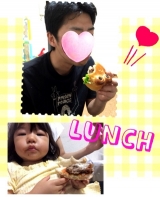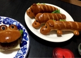 アウトドアを楽しむ季節、わんちゃんのホットドッグ、カエルのお口にハンバーグをはさんで「カエルバーガー」、どうぞご家族皆さまでお楽しみください。