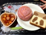 | ハートサンライズ(3個)飽きのこない、定番のおいしさです。ふんわりと甘い生地に香ばしいビスケット生地をのせて、ハートをスタンプして焼き上げました。パンダ食パンを食べた翌朝に、思わず笑顔になるハートのサンライズが入っています。 | |