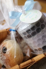 デンマークのお祝いのお菓子、クランセケー、クランセローズにリボンをおかけして、ちいさなギフトセットにしました。