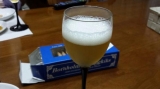 ワイングラスで飲むビール、父の日のお祝い向けに初めて飲みました 氷水に冷やしたビールボトルから注がれたビールはワインのような香りがします おつまみにチーズとクラッカーを食べました、チーズカッターが見つからず 包丁で切りましたが柔らかいのでグチャグチャ… 2015/06/14