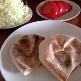 | ピタパン中近東の平らなパン。ピタパンは別名“ポケットパン”ともいわれます。半分に割って中の空洞に野菜などお好きなフィリングをたっぷり詰めてサンドイッチにしてお楽しみください。 | |
