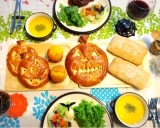 カボチャスープとハンバーグ、おばけカボチャにパンプキンマフィンなど、ハロウィンにオススメのパンとデリをセットにしてお届けします。届いたらパーティスタート!今年はみんなでハロウィンパーティしよう!