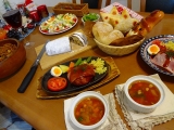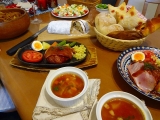 アンデルセン自慢の2種類のデンマーク風ハンバーグ(プレーン、チーズ)に、自家製のコーンスープとミネストローネそして、石窯で焼き上げた素朴な田舎風のパン石窯ペイザンヌで、楽しいディナーの始まり♪