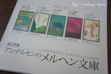 先日、パン屋さんのアンデルセンのメルヘン文庫の本が届きました申し訳ない事に、この本が届いて初めてアンデルセンが文庫本を出されてた事を知り、今回で第29集だったので、この前に28集有るんだーと文庫本を出されてからの歴史を感じました … 2012/10/28
