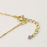 | 全長18cm、そのうち3cmのアジャスター部分は、 着脱しやすいように 目の大きなチェーンを使用しています。 アメジストは2月の誕生石でもありますが、 人気のカラーストーンのひとつでもあります。 |