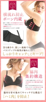 ●横流れ防止ボーン内蔵で、脇肉・ハミ肉をしっかりかき集めてがっちりキープ!
