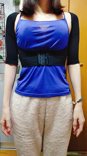 服のように腕を通して 好きな締め付け具合をホックで調整できるから キツすぎないし、すごく着やすい! 二の腕シュッとして気持ちいいです♪ 簡単に細く見せてくれた(^_^) バネのように肩甲骨を引っぱってくれるから 肩が内に入らない感じだね 自然と胸が上を向くし シルエットも綺… 2022/03/09