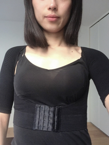二の腕をスラッと細くみせてくれます着ると背筋もピンとなり猫背を直してくれる感じがしましたバストは着圧の引き締めで胸が垂れることも防いでくれてる感じがしました4段階ホックも付いていて自分に合う調節ができるのでムリな着圧はなく引き締めはしっかりしてくれます 2022/02/24