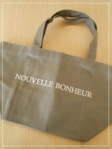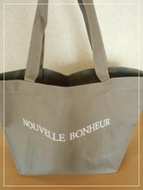 アンジェのオリジナルブランド NOUVELLE BONHEUR キャンバストートバッグS です私は落ち着いた色のグレー 大好きな色ですシンプルなコットンキャンバス地のロゴ入りトートバッグ丈夫で長く使えるように日本製のしっかりとした厚みのある生地を使用してあります底が広くて 見た目より結構たくさん… 2015/07/10