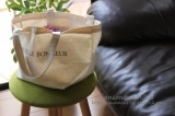 アンジェオリジナル「NOUVELLE BONHEUR」のロゴ入りのキャンバストートバッグ S。日本製のしっかりとしたコットンキャンバス素材を使用。お弁当や水筒を持っていく際のサブバッグとしてや、近所のスーパーやコンビニへのお買い物に◎のコンパクトなサイズ感です。