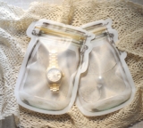 > 絵になる、ガラスジャー風「ジッパーバッグ」 を使わせていただきましたさっそくアクセサリー、時計を入れてみました料理教室などで時計やアクセサリーを外す際このバッグに丈夫なバッグなので安心だし、水濡れ防止にもなります家での保管のさいもこのバッグに入れて… 2016/11/18