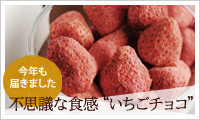 粒選りのイチゴに独自製法で、じわりじわりとホワイトチョコレートを含浸させた、サクッとしてクリーミィな食感が楽しめるチョコレート。
