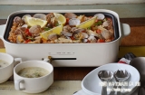 鋳物ホーロー鍋をイメージしたようなデザインで、とってもコンパクトなホットプレート、BRUNO ブルーノ コンパクトホットプレート BOE018です。A4サイズほどの大きさで、2~3人で囲む食卓や、他にもいろんなメニューを並べたホームパーティなどにもってこいです。