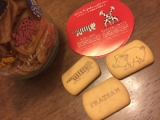 2015年は、初めてムーミンの物語が書籍化されて70周年を迎える年。そこで、ムーミン70周年記念 ブルーベリーボトル ビスケットが期間限定で登場。ムーミン・ムーミンパパ・ムーミンママ・フローレン・スナフキン・ミイの全6種類のカタチのビスケットは、夏期の北欧をイメージしたブルーベリー味です。