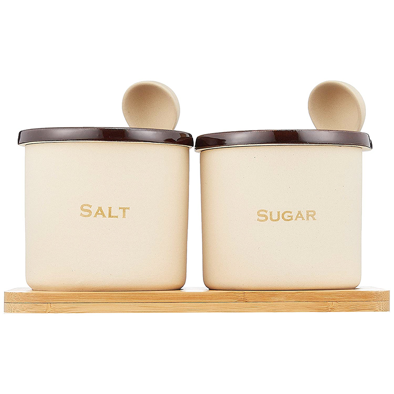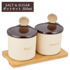 「シュガー&ソルトポット 300ml スプーン、木台付」をお送りします!