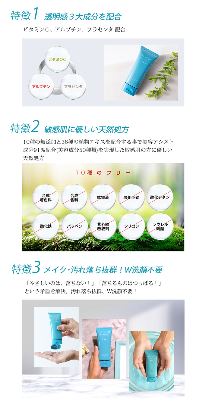 W洗顔不要★薬用天然クレンジング「DoWhite+」 美容成分91%配合を実現 美白3大成分、ビタミンC、アルブチン、プラセンタ配合 お肌にやさしい薬用クレンジング W洗顔不要 薬用天然クレンジング「DoWhite+」 とろんとしたテクスチャーのジェル ダブル洗顔が不要、美白効… 2024/11/19