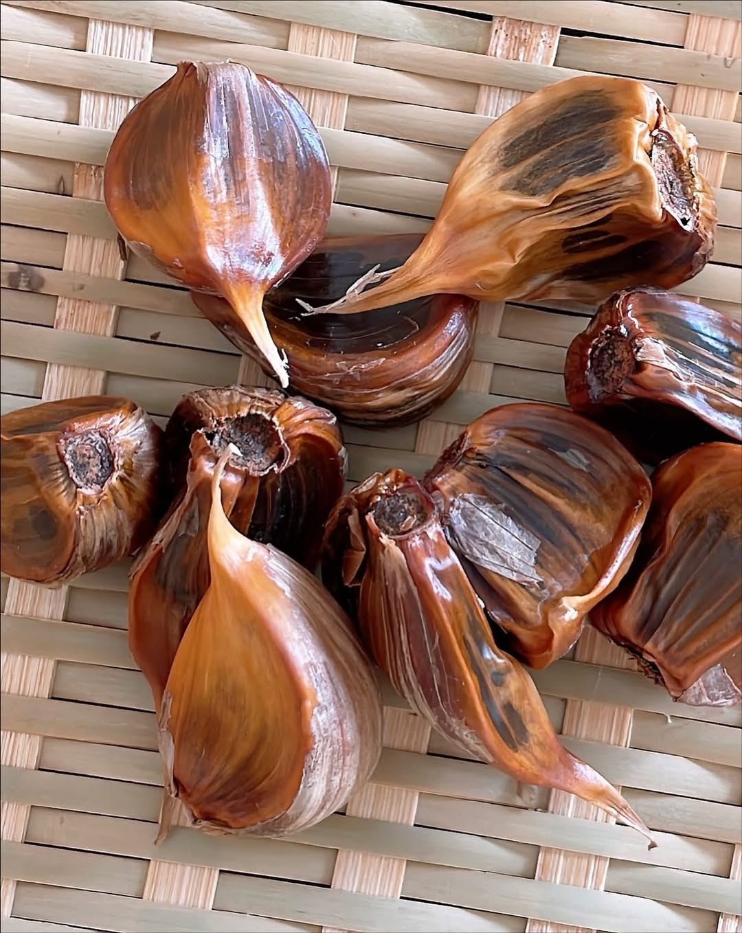 ついつい手が伸びてしまうほど美味しいのですが1日1片から2片🧄誰でも食べられるフルーツのような甘さだから家族みんなでいただきます♡200g、大きな黒にんにくがゴロゴロ入っているので満足度高い💯