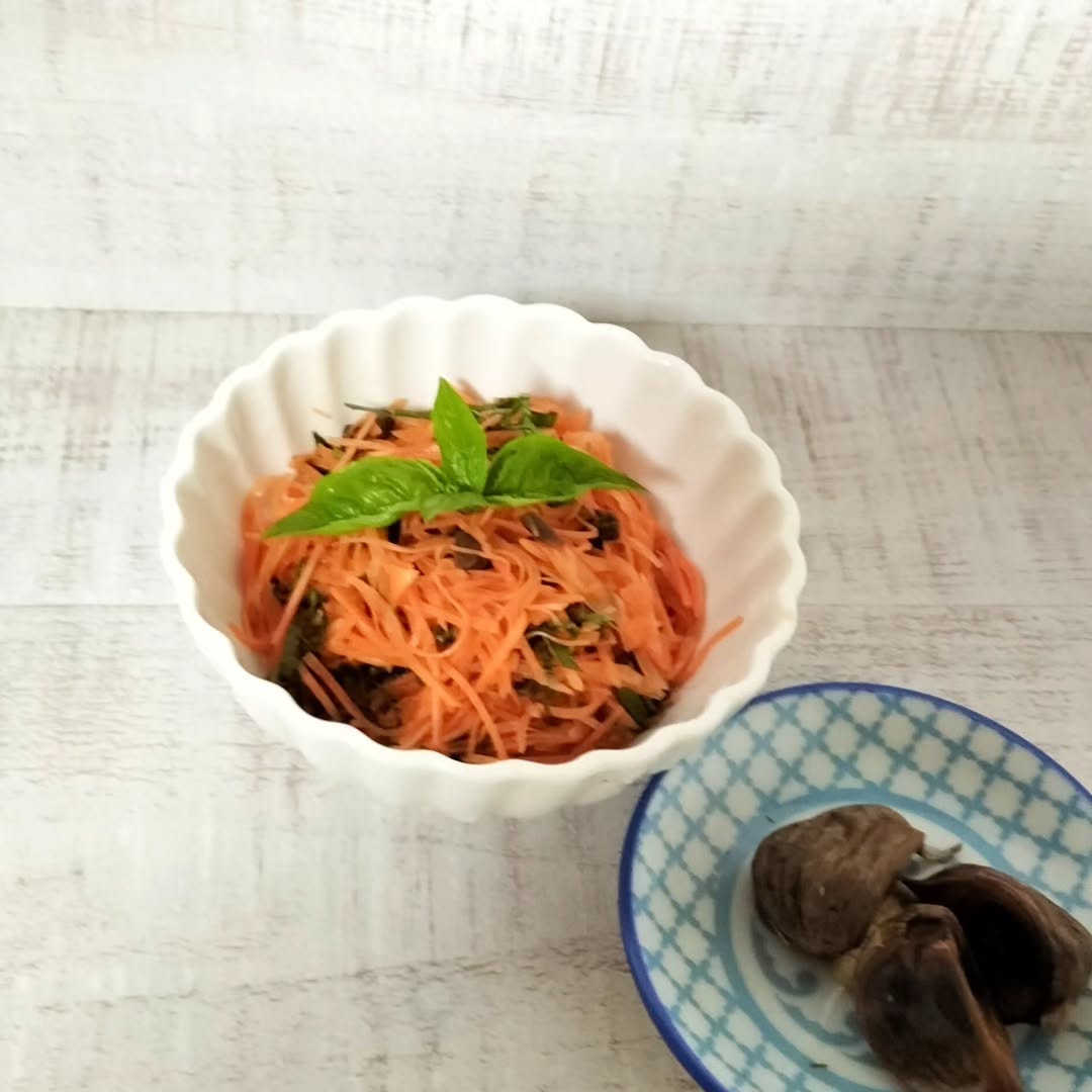 そのまま食べても、お料理に入れてもいいのですが、今回私はドレッシングの中に、熟成黒にんにくを入れてみました。
