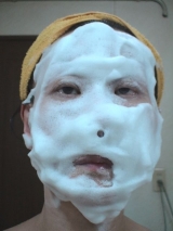 ④簡単にレモンの大きさの泡ができあがります。⑤クリーミーな泡