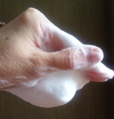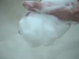 ③泡立てネットから出来上がった泡を絞りとるようにします。