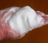 ①泡立てネットを軽く濡らしフェイス フォームを適量(1.5~2cm)つけます。