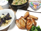 今日も暑かったですね先が思いやられますスウィートチリソースと塩麹、2種類に漬けておいた手間先をオーブンで焼きました焼いたらどっちがどっちか見た目ではわからなくなってしまいました残りご飯で卵とにんにく、ねぎでチャーハンナスの揚げ漬け、しょうがたっぷりでおいしいです昼過ぎに作り、冷たくしておきました… 2012/07/18