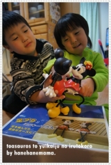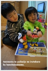 今週初め、我が家に新しいディズニーグッズが増えました青山ガーデンさんより足ブラ ミッキー&ミニーミッキーマウスが大好きな子供達が、喜ばない訳がなくさっそく1つずつ持って、嬉しそうに遊んでました次の瞬間には、、、CHUここにきて子供達、「何で足が紐なの?」というので、「箱の絵みたいに、座らせる… 2013/02/12