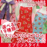 以前モニプラで応募したエプロンスタイル【APRON STYLE】またまたイベントしているので応募してみました♪今度は「スリムエプロン」プレゼントとのことこれ、デザインが可愛いだけじゃなく、着用するだけでスタイルがよくみえるとのことそんなエプロン、着用してみたい!ブログテーマはずばり「ダイエット… 2011/02/11