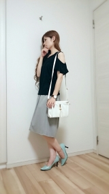 フリルオープンショルダーT…GUスカート見えガウチョ…aquagarageフリンジショルダーバッグ…aquagarageエナメルパンプス…aquagarageネックレス…アンテプリマ腕時計…ダニエルウェリントン悩んだ末にブラックを購入しました良い感じの肩の露出感オフショルダーやオープンショルダーなど… 2016/06/18