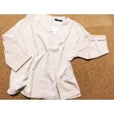 自然と身体に沿うとろみ生地を使用した、プルオーバーブラウス♪ゆるてろな素材感や美デコルテに見せる深Vネック、ゴールドボタンが粋なバックスリットなど女性らしさを引き立たせるディテールを盛り込んだ、”大人女子”のための一着♪