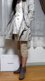 アーチフィッターの116パンチングブーツです!!落ち着いたスモーーキーグレーはどんな服でも色でも絶対合うって思ったんです!!思った通り!大好きグレーにもぴったり!(娘に撮ってもらったら足が切れた(>__ 2013/03/04