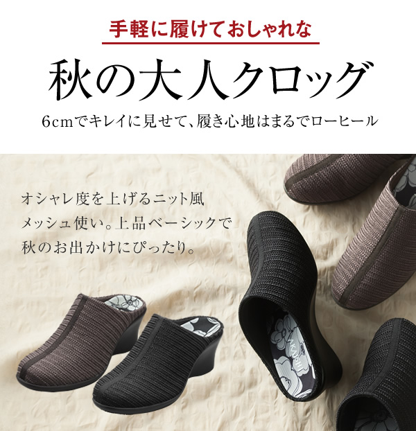 ローヒールの履き心地で歩きやすい6cmヒールクロッグ。