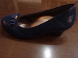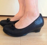 今年初の私の新しい靴さんの134ウェッジパンプスリボンといって春夏新作アイテム私のはネイビーで、他にはブラックも日本製人工皮革が美しく、汚れもつきにくそうに感じました幅広い年代の女性に似合いそうなエレガントなデザインで、程よい光沢があります私は正直、ヒールのある靴はそんなに得意じゃない坂… 2016/02/11