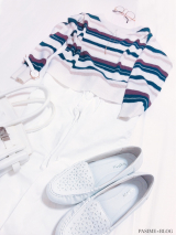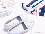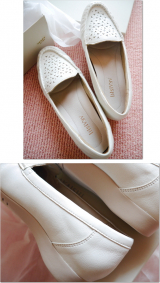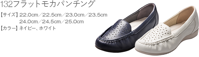 冬のコートを脱いだら、足元も春らしく整えて、軽やかに歩きたくなりますよね そんな気分にぴったり、おなじみ AKAISHI さんからこの春登場の パンチングデザインがさわやかな春夏フラットシューズのご紹介です 132フラットモカパンチング ネイビーとホ 2018/03/24