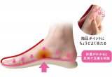 足裏に当てたとき、気持ちよさを感じるポイントで指圧効果を感じられるよう、ふくらみを持たせた設計の指圧フットベッド。踏み込んだとき、このふくらみに体重がかかると、バネのような反発力で足裏を刺激。歩くたびにほどよい強さの指圧効果が得られます。