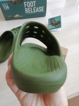 スポーツや仕事でたまった足の負担を開放する 機能性サンダルが新登場 ◎足のアーチをサポート アーチの主な働きは、スポーツに重要な衝撃吸収と骨格剛性を高め、力を伝えやすくすることです。日頃からフットリリースで、アーチを支えながら歩くことでアーチの健康を維持します。 ◎足指を開放 フットリリースは、足を乗せ、荷重することで足趾が広がりやすくなります。足指を開放したくなるスポーツの後にもお薦めです。 ◎スポーツ後の足裏指圧 クールダウンやアイシングの後に、足裏を指圧することは足のコンディション維持にいいとされています。フットリリースの凹凸形状のフットベットは足裏をやさしく刺激して筋肉のこりをほぐします。 ◎素足で履いて気持ちのいい柔らか設計 サンダル全体に柔らかいEVAを採用しているので、足裏全体を優しくホールド。また、足裏がべとつきにくく滑りにくいデザインを採用しています。 ※長時間の歩行には向いていないのでご注意ください。 ■商品仕様 【材質】EVA 【カラー】ブラック、カーキ、ベージュ 【サイズ】 M~4L 5サイズ https:/ レビュー数 : 3 |