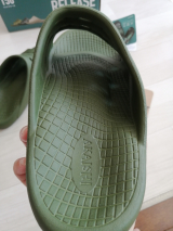 サンダル全体に柔らかいEVAを採用しているので、足裏全体を優しくホールド。また、足裏がべとつきにくく滑りにくいデザインを採用しています。