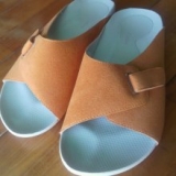 先日から、職場で履いているスリッパです 外反母趾O脚にはアーチフィッター 私が使っているのは上の方アプリコットです 履いてみた感想! きもちいぃそして 楽です 普段、立ち時間が長かったり 反対に同じ姿勢でパソコンに向かうことも多いのですが ホントに楽ちんです… 2013/08/30