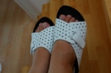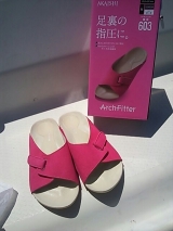 先日から、職場で履いているスリッパです 外反母趾O脚にはアーチフィッター 私が使っているのは上の方アプリコットです 履いてみた感想! きもちいぃそして 楽です 普段、立ち時間が長かったり 反対に同じ姿勢でパソコンに向かうことも多いのですが ホントに楽ちんです… 2013/08/30
